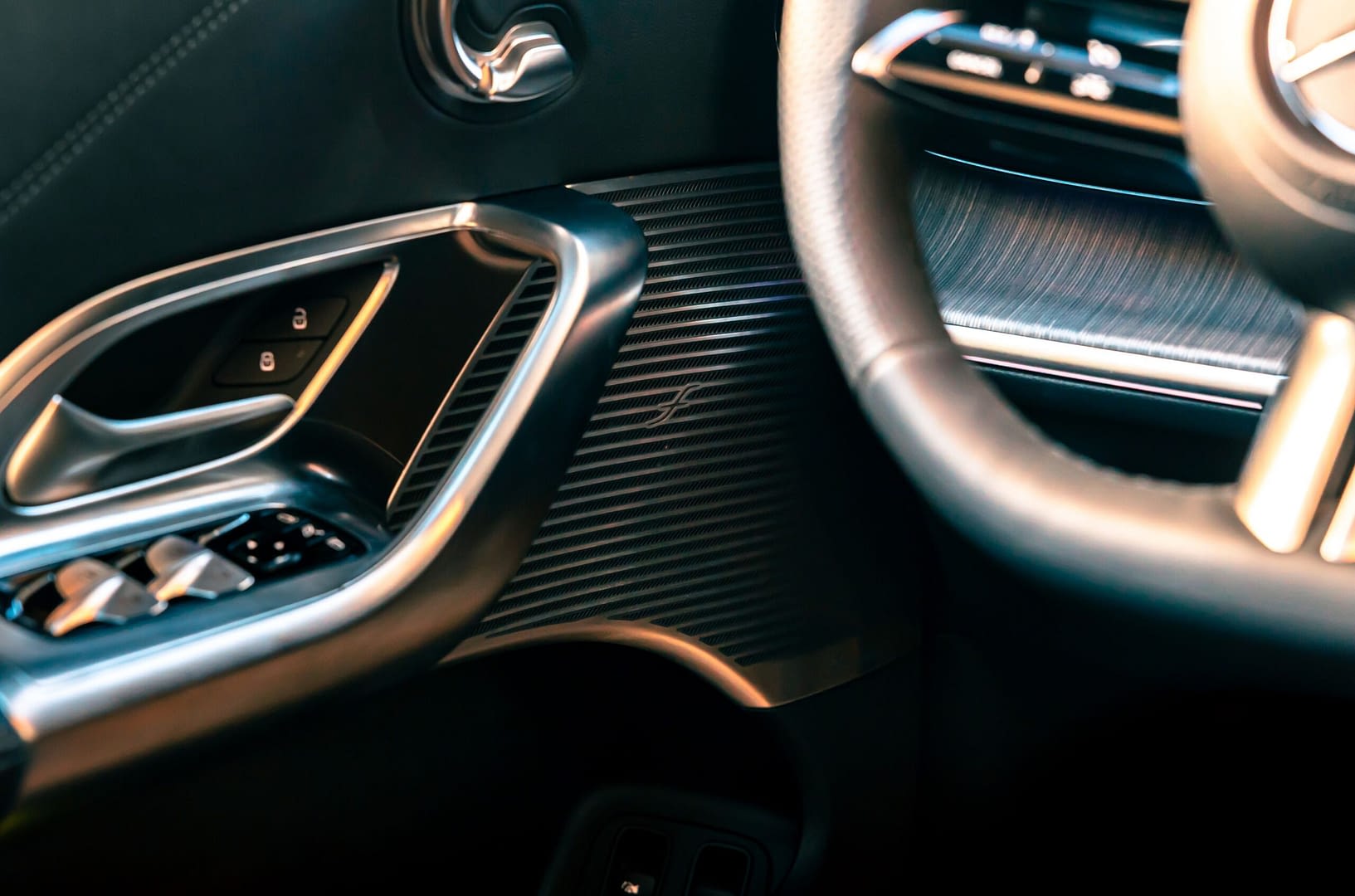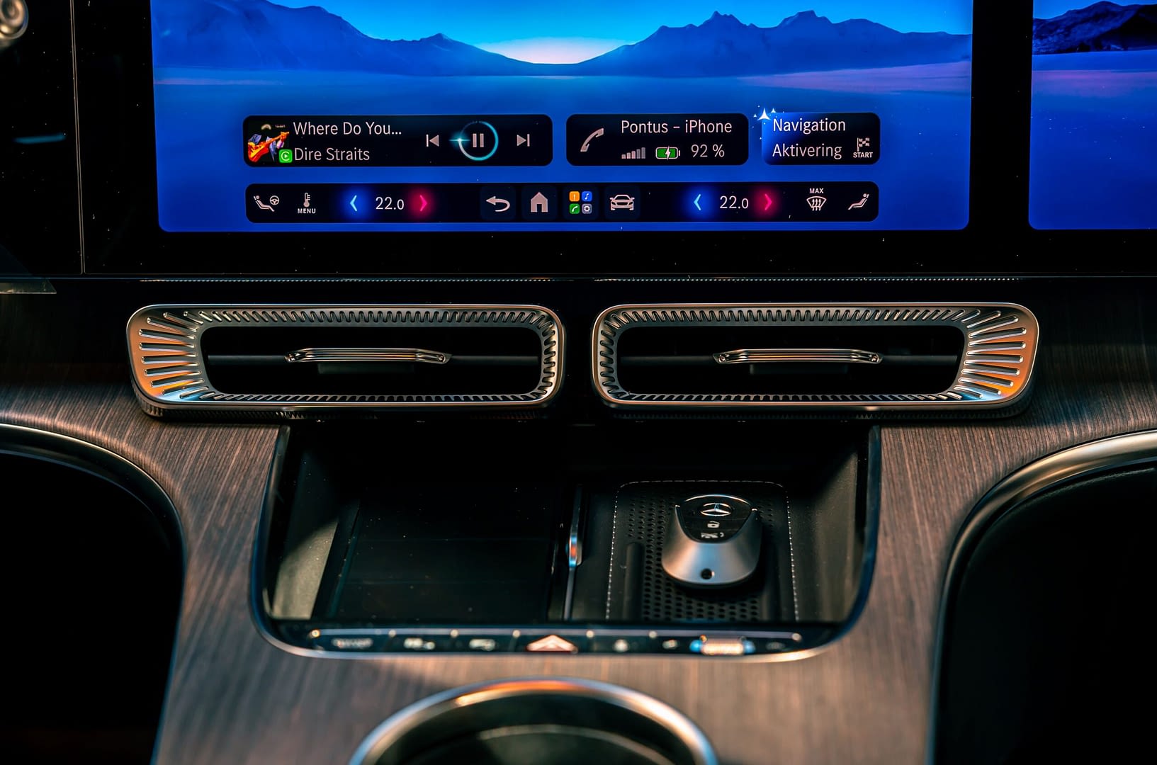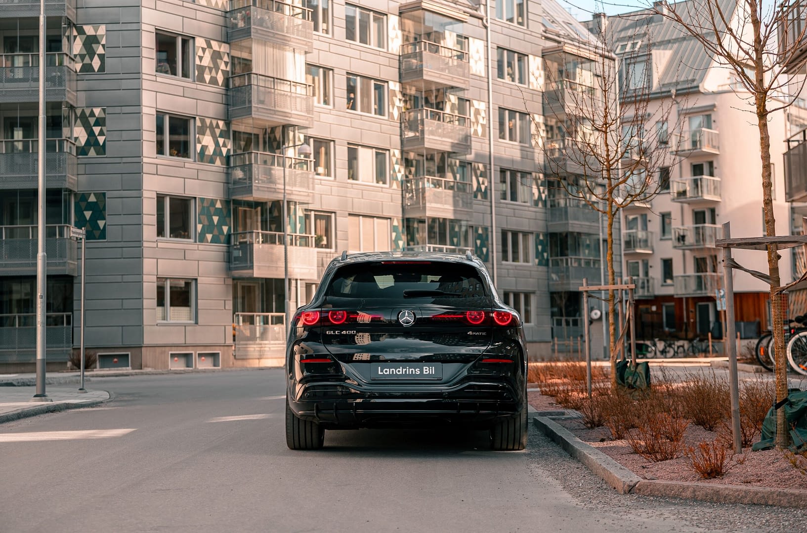 Den helelektriska GLC imponerar redan vid första anblicken. Den nya, ikoniska fronten med belyst Mercedes-Benz-stjärna och grillpanel skapar ett exklusivt uttryck, medan den kraftfulla sidolinjen med markerade axelpartier och kromdetaljer balanserar styrka med elegans. Bakljusen i stjärndesign väcker uppmärksamhet både dag och natt och ger bilen en unik signatur, medan de infällda 21-tumsfälgarna och de breddade hjulhusen förstärker den dynamiska karaktären.