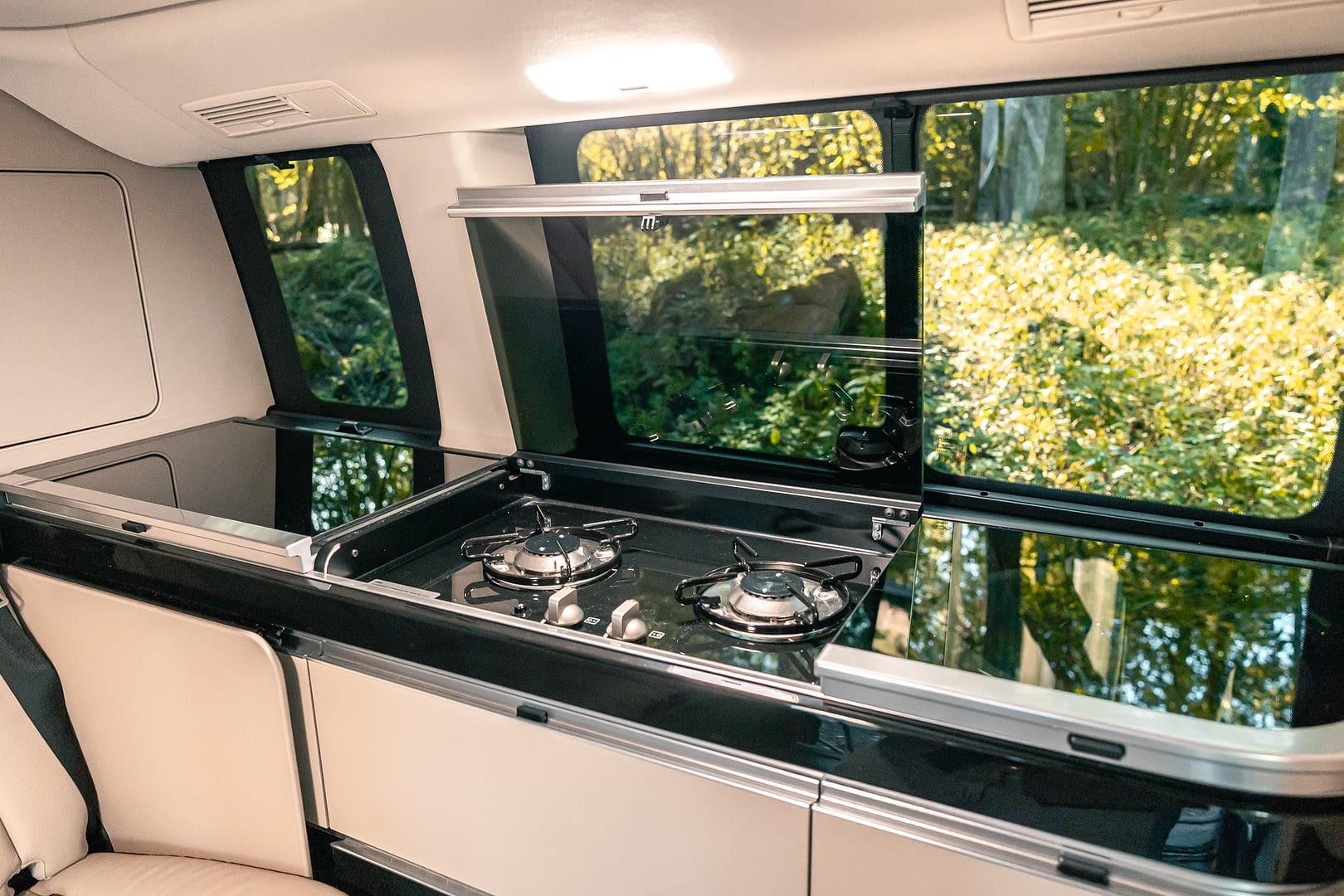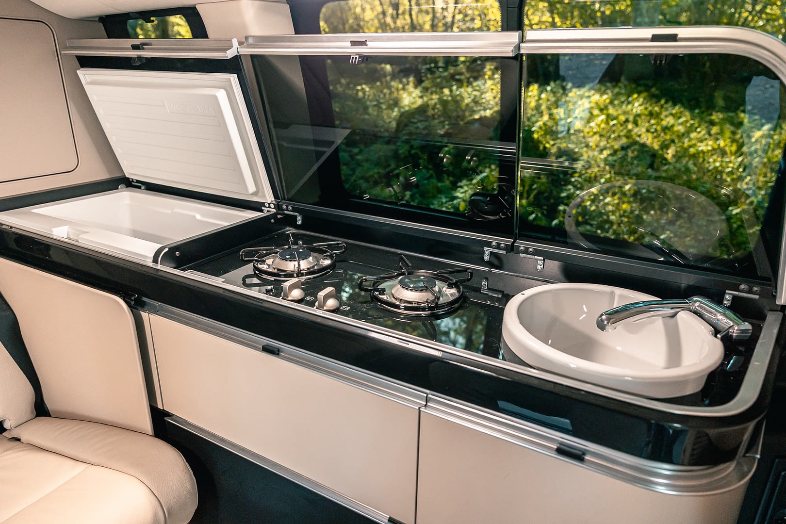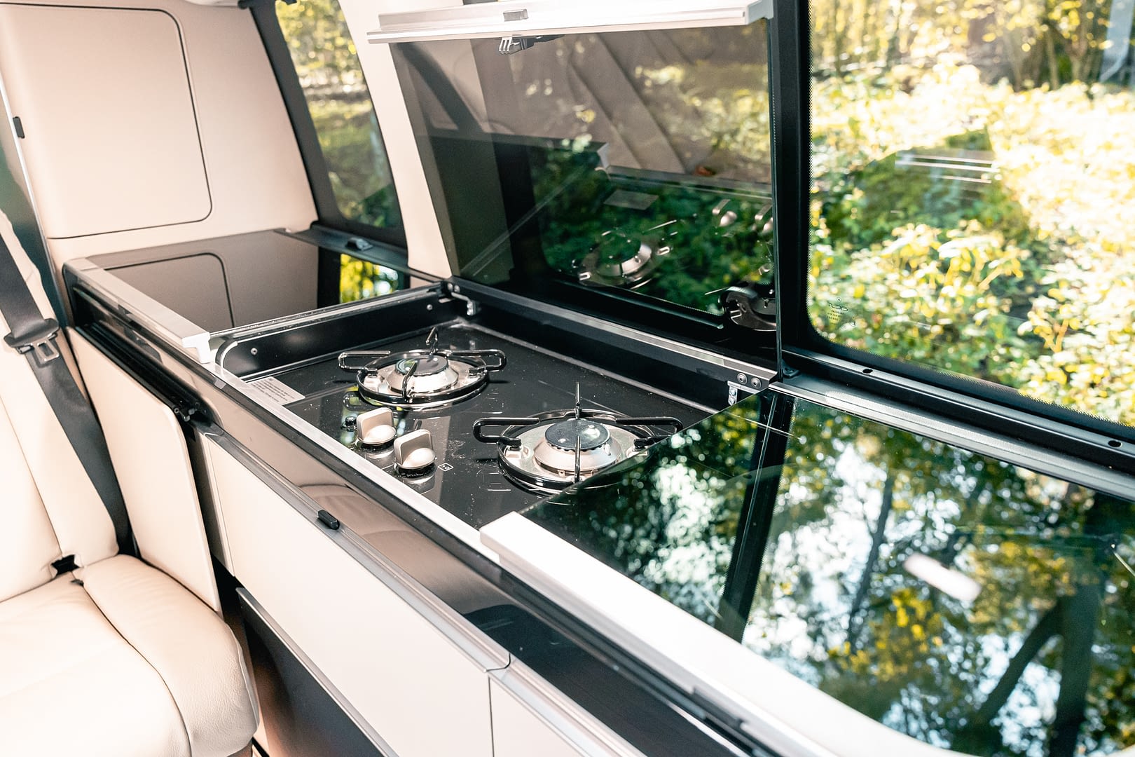 Här ryms allt du behöver för att ge dig ut på äventyr: fyra bäddar, kök och matplats. Sov, laga mat, ät, och upptäck på dina villkor. Utan att kompromissa med komfort eller kvalitet.