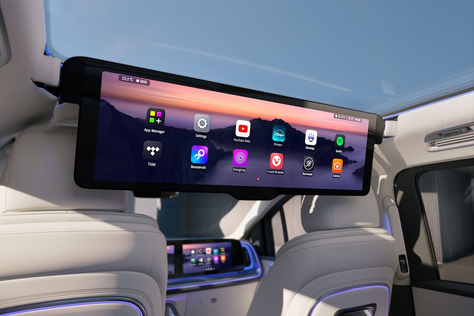 Med infotainmentsystemet för baksätet lyfts upplevelsen till en ny nivå. Tillvalet MBUX Rear Space Experience med en utdragbar 31,3-tums högupplöst skärm gör det möjligt att se film, spela spel eller delta i videomöten, samtidigt. Tack vare split-screen-funktionen kan skärmen delas och visa olika innehåll parallellt. När du hellre vill njuta av utsikten fälls displayen smidigt tillbaka i sitt diskreta läge ovanför framstolarna.