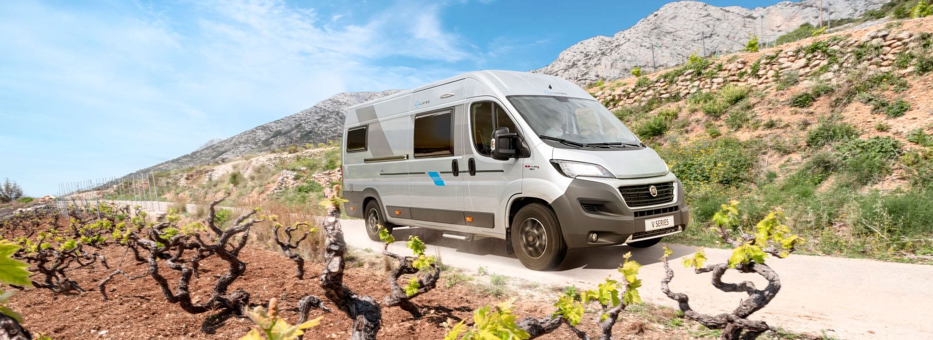 Van med Sun Living exklusiva funktioner. Det finns två modeller, V60SP för 2 personer och V65SL för upp till 4 personer, med fordonslängder på 5,9 m eller 6,4 m.