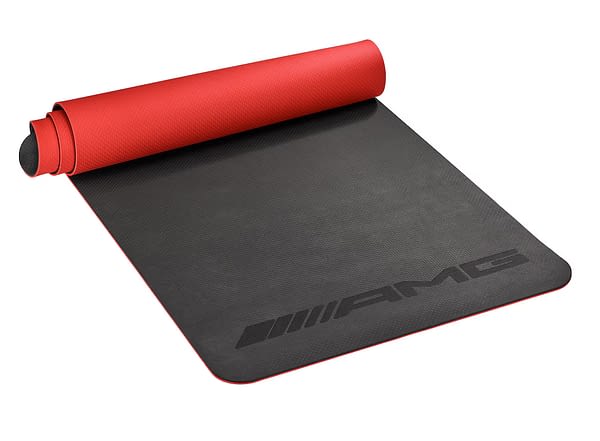 AMG-fitnessmattan med sin halkfria yta en pålitlig följeslagare vid träning och är ett idealiskt underlag för alla workoutpass. Tack vare bärremmarna med röd AMG Outline-logotyp är den ändå smidig att transportera, samtidigt som den lasergraverade AMG-logotypen avrundar mattans sportiga design på ett skickligt sätt.