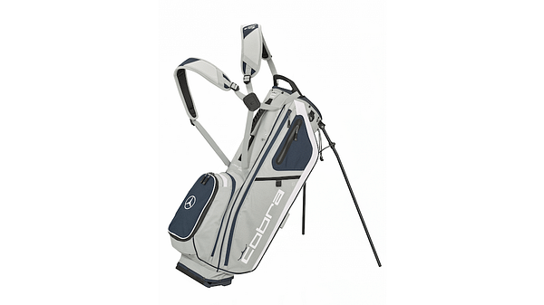 Ett stort klädfack, ett fodrat värdesaksfack, en stor bollficka och ett öppet, isolerat fack för vattenflaskan: Designen på den här bärbagen i nyanserna grått och navy lämnar ingenting åt slumpen och kompletteras med ytterligare två tillbehörsfickor och ett tillbehörsfack med magnetlås. Den har även 4-delad topp, ”Easy Flex Base”-stabiliseringsmekanism för att stå stadigt och passa bättre till vagn samt en ”Cart-Pass-Thru”-tunnel för vagnens fästrem. Ytterligare fördelar är den praktiska handduksringen, paraplyhållaren som består av snöre och ögla samt regnhuvan som skyddar innehållet även på regniga rundor. För enkel och bekväm transport av golfbagen finns en bärrem på framsidan samt en vadderad, dubbel ryggsäcksbärrem med 4 punkter. Bagen har även ett lyfthandtag nedtill som gör det lättare att ta ut den ur bagageutrymmet.