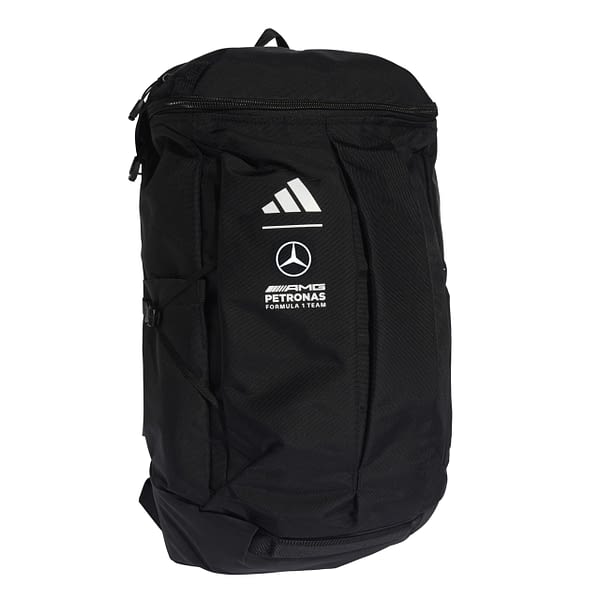 I den här sportiga ryggsäcken finns det plats för allt. Inte nog med att det stora huvudfacket erbjuder gott om förvaringsutrymme, det finns också olika blixtlåsförsedda fack där du kan hålla ordning på nycklar, plånbok och annat inom räckhåll så att du snabbt kommer åt det du behöver. En flaska kan också transporteras i den praktiska sidofickan. För ökad komfort när man bär den har ryggsäcken ett justerbart bröstband som gör det möjligt att anpassa passformen. En Mercedes-AMG PETRONAS Formula One Team-logotyp och en adidas-logotyp ger ryggsäcken en modern look.