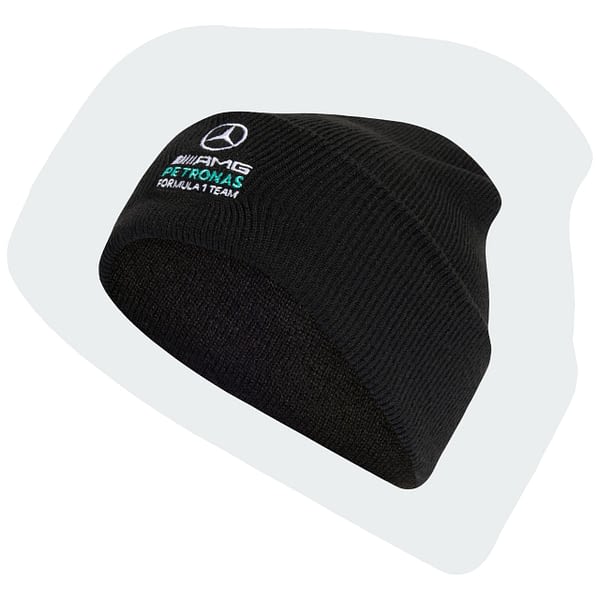 Den svarta stickade mössan i polyakryl med klassiskt uppvik är bekväm att använda och perfekt för årets kallare dagar. Fram har den Mercedes-AMG PETRONAS Formula One-logotypen och bak adidas-logotypen – två starka varumärken förenade i en högklassig accessoar.